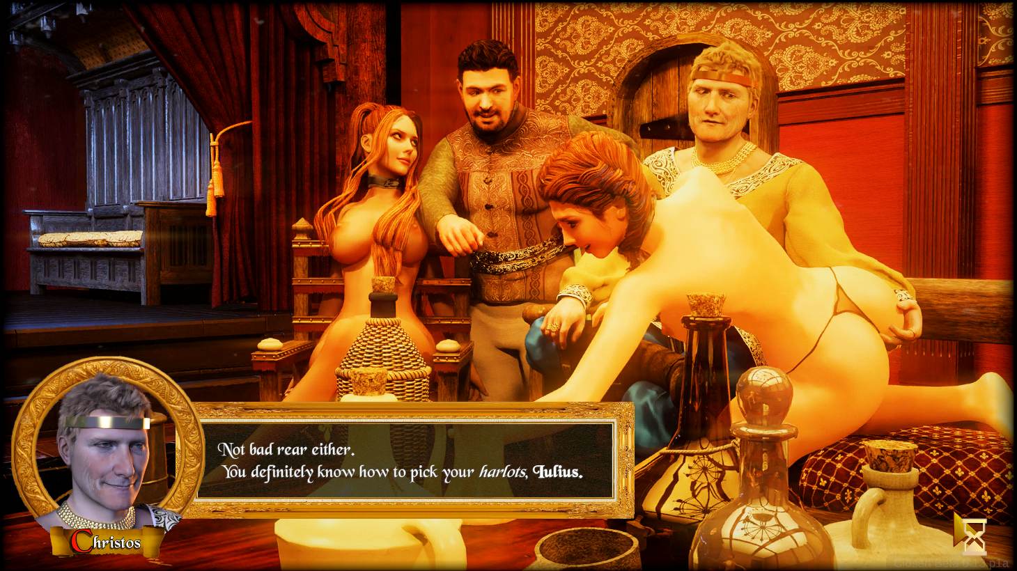 You play the role of Sir Patrik of Akros, a charismatic, handsome and middle aged (for the times) Knight that set by bonds of loyalty and family to the new Countess of Kathia, is bound to gather the fealty of the vassals of his liege, cajole with the outer counts, and overthrow the Duke of Luvia. It will not be only a path of conflict, choices of whom to trust and whom to make a head short, but will let the player enjoy the power fantasy of the Middle Ages, using the lesser and being used by the higher, both for power and for pleasure. In your treacherous journey among medieval politics, nothing will stop you from romancing and lay with any woman that is put in your way, for lust, love or political interest. Not only nothing stops you: Is part of your mission.