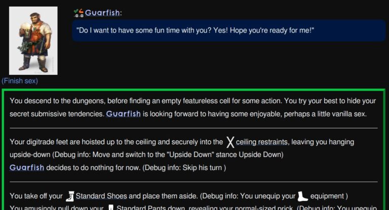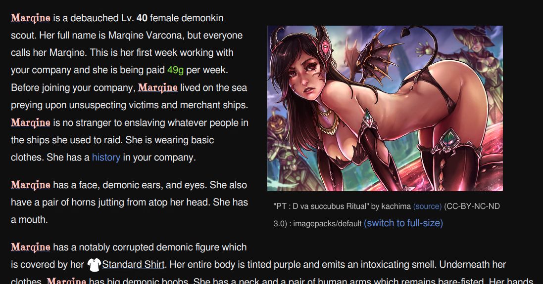 Fort of Chains is a completed, free, moddable, open-source, TEXT-ONLY sandbox management NSFW game where you lead and manage a band of slavers in a fantasy world. The game is configurable and can cover all gender orientations: MM, MF, and FF. Be warned that the game contains heavy themes of slavery and non-consensual sex. There are no support for playing as a submissive character. Pregnancy is not in the game. (F.A.Q) (Fetish List)