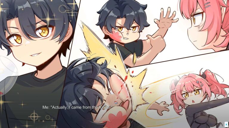 This is a visual novel game where players play a protagonist trapped in a time loop and break the loop to save the heroine.