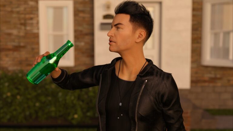 Horny Holiday is a short romantic comedy visual novel. It begins with Jack, still reeling from a breakup with his girlfriend, Becky. To cope, he indulges in a cathartic moment: deciding which of his ex’s belongings to set on fire. After this release, Jack receives an invitation to a holiday housewarming party hosted by a new couple down the street.