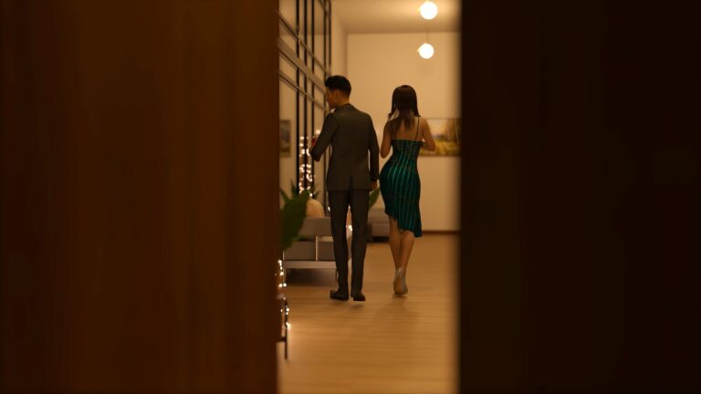 At the party, Jack mistakes Joy, a confident guest, for the hostess. Amused, Joy plays along and gives Jack a tour of the house. As they explore, they bond over shared interests like cooking, video games, art, and exercise. Depending on your choices, Jack might express his genuine interest in Joy, leading to a heartwarming moment where they look forward to exploring their connection amidst the festivities.
