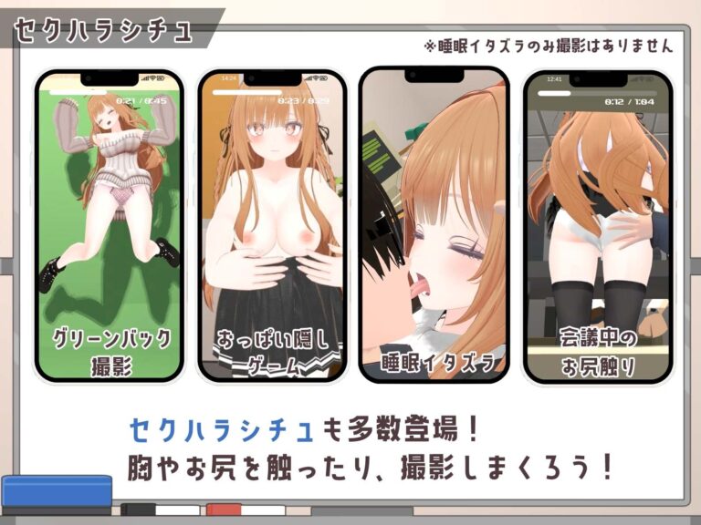 Main HeroineRiri Ogi A new hire at a small fashion magazine editorial department. Her striking looks land her modeling assignments alongside her editorial duties. Bright and adorable, she’s popular even in other departments. She happens to be assigned to the protagonist’s department when he’s alone, leading to days of being secretly filmed and sexually harassed by him .Sub-Heroine General Affairs Lady Her gentle, soft-spoken manner has earned her many secret admirers within the company. Her good looks occasionally land her gigs as a photo shoot model for the magazine.