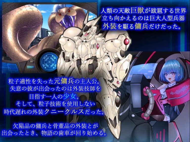 In the near future, humanity has achieved remarkable progress with the discovery of infinite energy called “Akasha Particles.” However, this advancement also brought about the emergence of “Gigantic Beasts,” which dethroned humans from the top of the ecological hierarchy. The survival of the displaced humans now depends on large humanoid weapons called “Exos” and the “Mercenaries” who pilot them.