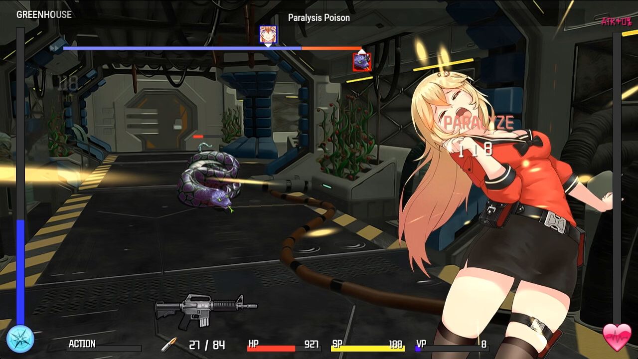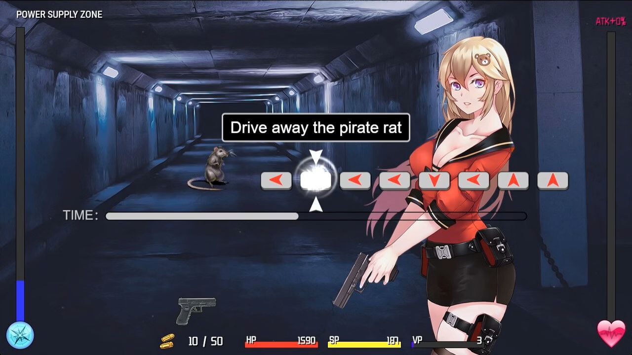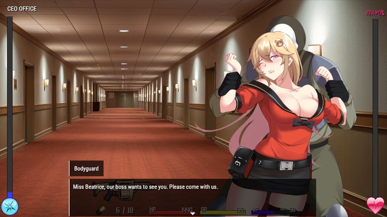Embark on a daring journey with Beatrice as you kick, shoot, and loot through a secret underground lab. In this rogue-lite RPG/ADV, engage in strategic combat and face intense encounters that may strip her bare… of her defenses and expose her to unspeakable dangers!